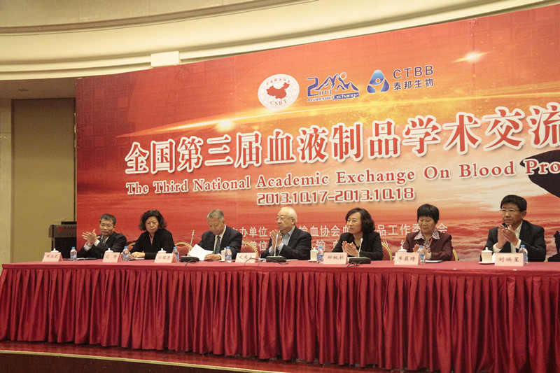 2013年10月17-18日,由中國(guó)輸血協(xié)會(huì)血液制品工作委員會(huì)主辦、《中國(guó)輸血雜志》編輯部協(xié)辦、山東泰邦生物制品有限公司承辦的全國(guó)第三屆血液制品學(xué)術(shù)交流會(huì)在山東泰安成功舉行,大會(huì)開(kāi)幕式由中國(guó)輸血協(xié)會(huì)副理事長(zhǎng)孫紹忠主持,中國(guó)輸血協(xié)會(huì)理事長(zhǎng)朱慶生、山東省衛(wèi)生廳副廳長(zhǎng)邱楓林、泰安市衛(wèi)生局局長(zhǎng)劉煥星、中國(guó)輸血協(xié)會(huì)副理事長(zhǎng)單藕琦、中檢院生物制品研究所所長(zhǎng)沈琦、中國(guó)輸血協(xié)會(huì)血液制品工作委員會(huì)主任委員鄒漢武等領(lǐng)導(dǎo)出席了會(huì)議,來(lái)自美國(guó)的專家、學(xué)者以及來(lái)自各血液制品公司、單采血漿站、各血液制品研究單位等77家單位近200余位會(huì)議代表參加了本屆學(xué)術(shù)交流會(huì)。